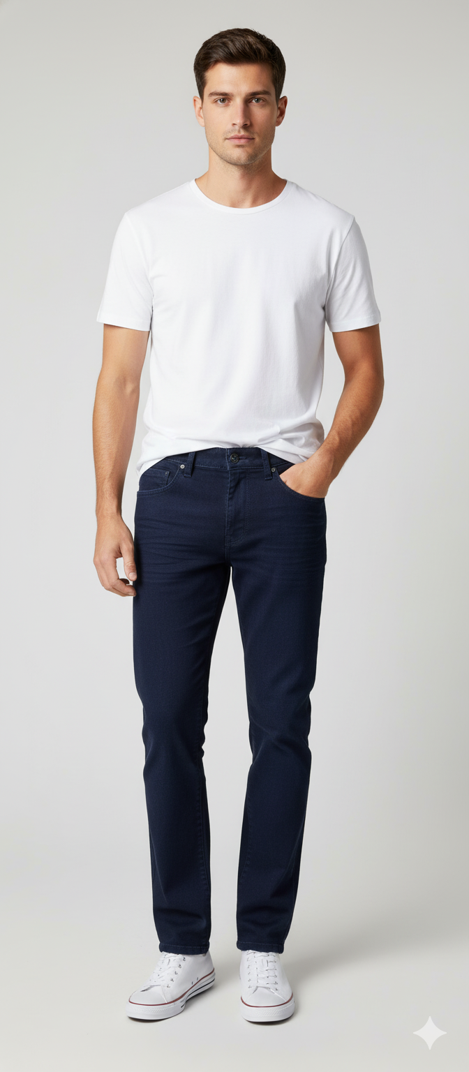 Calça jeans masculina confortável e moderna, ideal para o dia a dia.